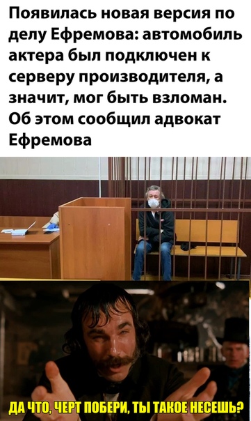 Адвокат Ефремова — Эльман Пашаев заявил,что за рулем артиста могли ослепить лазером, а в кондиционер его джипа вбросить отравляющие вещества.ага, а еще он попал сейсмическую зону, из-за которой у него зачесалась левая подмыха и он отвлёкся